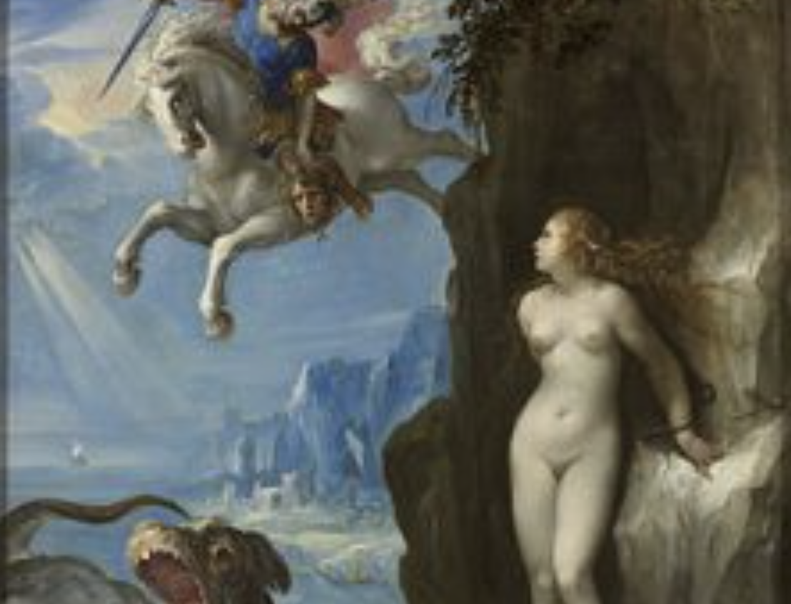 Mitoloji literatüründe Andromeda, Aithiopia Kralı Kepheus ile Kassiepeia’nın kızıdır. Andromeda’nın güzel ve kibirli olan annesi Kassiepeia, tüm Nereus kızlarından daha güzel olmakla övündüğü için Nereus kızları tarafından Deniz Tanrısı Poseidon’a şikayet edilmiştir. Bunun üzerine Tanrı, Aithiopia’ya korkunç bir ejder göndererek tüm ülkeyi birbirine katmıştır. İçine düştüğü kötü durumdan kurtulmak isteyen ve kahine başvuran kral, tek çözümün kızını ejdere kurban etmesi olduğunu öğrenmiştir. Çaresizliği ve halk tarafından da zorlanması, kralın kızını ejder tarafından yenmek üzere bir kayaya bağlamasına neden olmuştur. Ancak canavar Andromeda’yı parçalamak üzereyken, Pegasus -kanatlı at- üzerinde gökyüzünde dolaşan Perseus yere inmiş ve canavar Gorgo’yu öldürmüştür. Kayaya bağlı güzel Andromeda’yı gören Perseus, ona aşık olmuş ve kralın da izniyle onunla evlenmiştir. Andromeda ile sözlü olan ve aynı zamanda amcası olan Phineus, adamlarını toplayarak düğün gecesi Perseus’a saldırsa da, Gorgo’nun kafasını kendilerine doğru tutan Perseus tarafından adamlarıyla birlikte taşa dönüştürülmüştür. Tüm bunların sonucundaysa Andromeda, kendisini tüm bağlarından ve güçlerden kurtaran Perseus ile uzun ve mutlu bir ömür geçirmiştir.